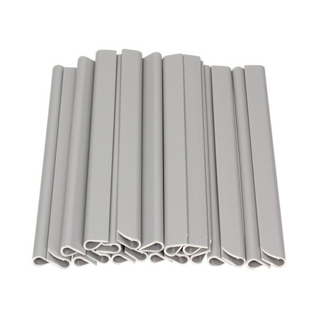 Estetyczne i stabilne mocowanie taśmy ogrodzeniowej – szare klipsy RAL 7040 z powłoką PVC odporną na promieniowanie UV, 20 sztuk w opakowaniu.