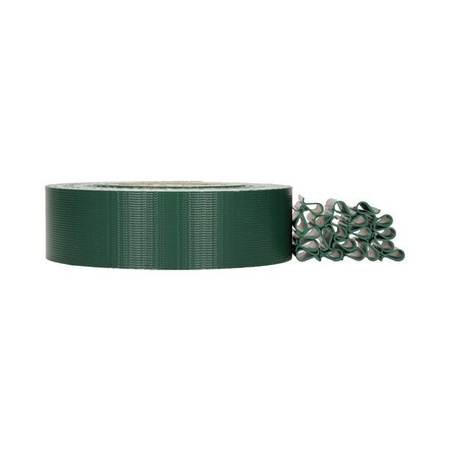 Naturalna osłona i estetyczne wykończenie ogrodzenia – taśma o wysokości 4,75 cm w kolorze zielonym RAL 6005, z kompletem 20 klipsów montażowych.