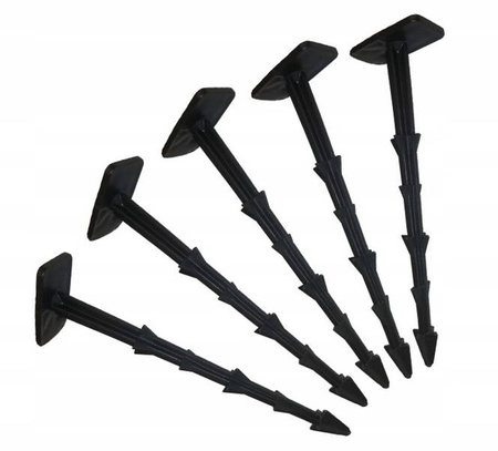 Praktyczne mocowanie do stabilnego przypięcia agrotkaniny i włóknin w ogrodzie – komplet 50 sztuk.